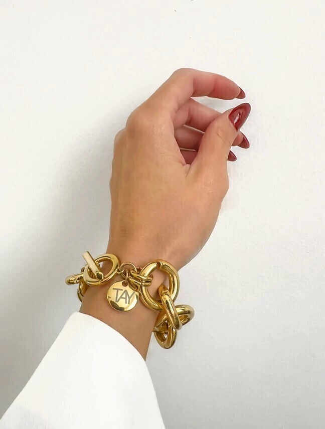 Descubra a elegância da nossa Pulseira Afrodite, banhada em ouro 18k. Esta peça é moderna e sofisticada, com um design liso e atemporal que complementa qualquer look, desde o casual até o formal. Feita com uma incrivel verniz italiano, para quem aprecia a moda de forma contemporânea, esta pulseira é uma adição indispensável à sua coleção de semi joias. Com edição limitada, garantimos que poucos terão o privilégio de possuir esta obra-prima. A sua versatilidade e brilho incomparável fazem dela a escolha perfeita para destacar sua singularidade com um toque de ouro puro. Não perca a chance de adquirir esta joia exclusiva que está conquistando os fashionistas mais exigentes!